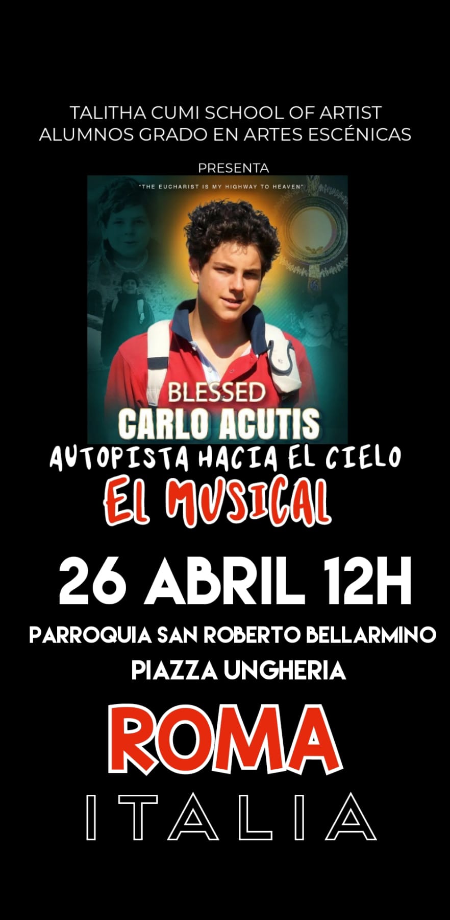 La emoción es contagiosa. Después de una exitosa gira por España, el musical “Autopista hacia el Cielo”, inspirado en la vida del beato Carlo Acutis, da el salto internacional y llega a Roma. Será el próximo 26 de abril, justo en la víspera de su canonización, cuando este elenco de jóvenes artistas de la escuela Talitha Cumi represente la obra en la parroquia San Roberto Bellarmino, en plena Piazza Ungheria, ante los peregrinos del jubileo de los adolescentes.