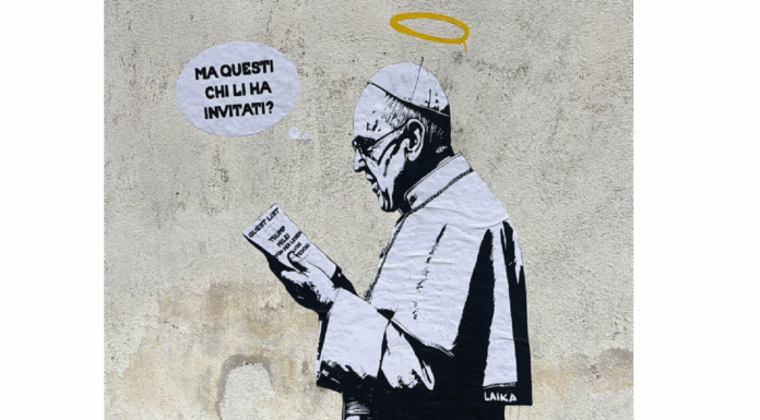 (ZENIT Noticias / Roma).- «¿Pero quién invitó a esta gente?», se pregunta el Papa Francisco en un mural pintado por la artista urbana Laika.