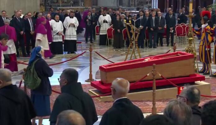 Durante siete minutos, sor Geneviève ha permanecido junto al Papa Francisco llorando discretamente. Mientras, ha continuado a sus espaldas el paso de cardenales, obispos, funcionarios vaticano y peregrinos que se han acercado hasta la basílica de San Pedro para darle un último adiós. Aunque la actitud espontánea de la hermana ha alterado mínimamente la solemnidad prevista, nadie ha interrumpido su recogimiento.