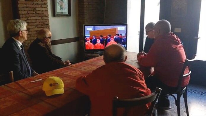 Las escaleras conducen al segundo piso, donde se encuentran los comedores. Marco Cimolino, que lleva aquí casi seis años, está ocupado con el desayuno. Ha preparado leche y café, panecillos y bocadillos. Poco a poco la casa se despierta, los huéspedes, unas 45 personas, 22 son italianos, la mayoría. Sólo hay cinco mujeres, dos de ellas: Emilia y Rosa también tienen cuidadoras. Hoy el día es diferente, la rutina cambia, los huéspedes pueden quedarse más allá de las 8, la hora habitual de salida. Todos pueden quedarse para ver el funeral de Francisco, el Papa que sienten como un amigo fraternal, Padre, uno de ellos.