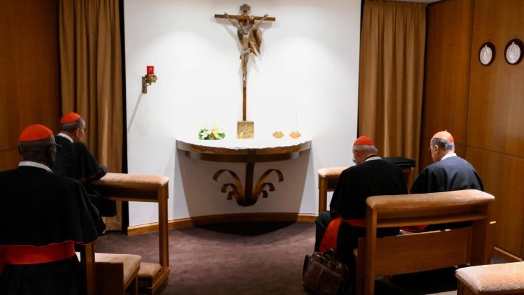 Una vez pronunciada la meditación, tanto el eclesiástico como el Maestro de las Celebraciones Litúrgicas Pontificias se retiran. A continuación, los electores recitan las oraciones según el Ordo Sacrorum Rituum Conclavis y escuchan al Cardenal Decano, que les pregunta si están preparados para proceder a la votación o si es necesaria alguna aclaración sobre las normas y procedimientos indicados en Universi Dominici Gregis.